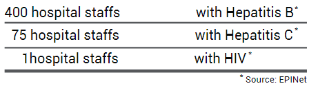 The danger of needlestick and sharp instrument injuries is frequently underestimated. Many health professionals think that small cuts or needlestick injuries are harmless and of no consequence, but they constitute serious hidden health risks for doctors and nurses in hospitals
